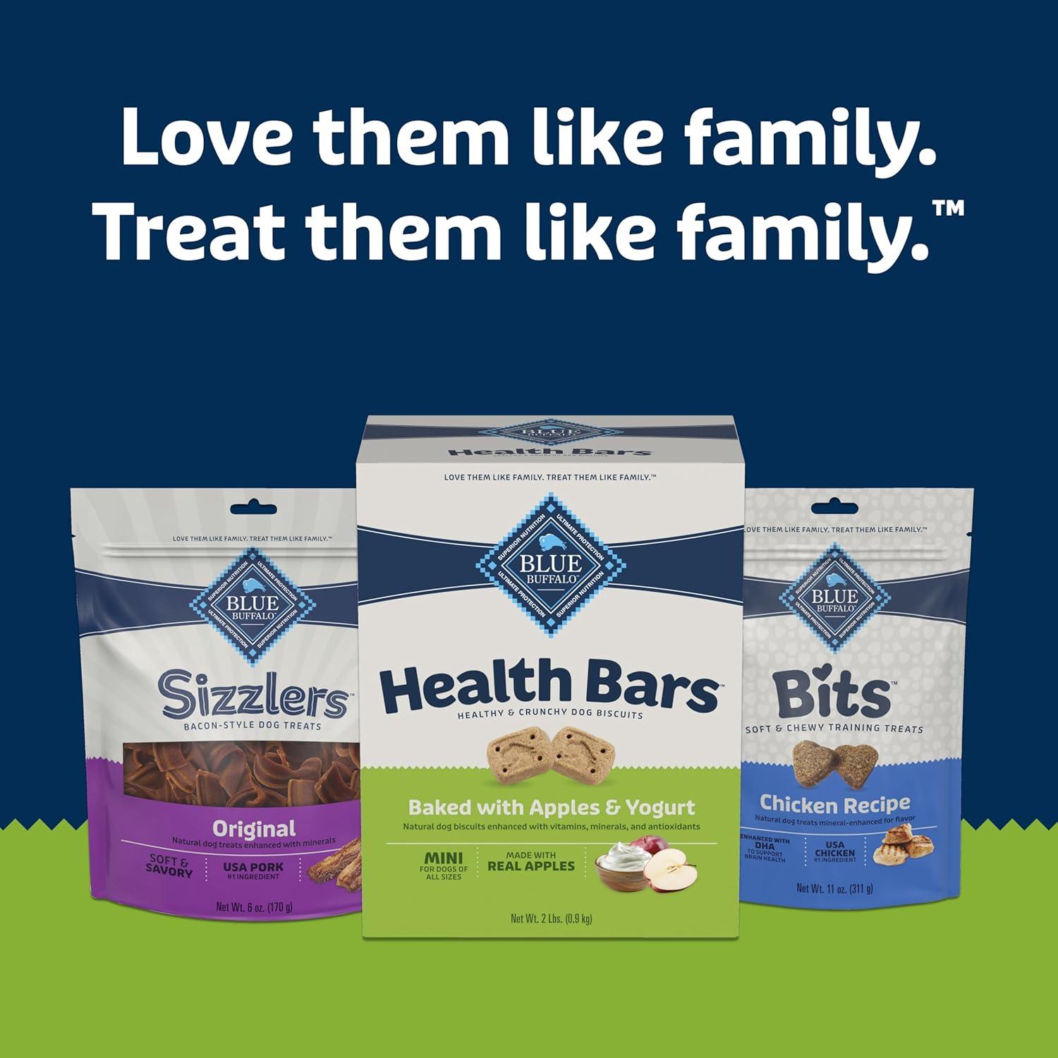 A favorite of health-conscious pet parents, Blue Buffalo Health Bars Mini dog treats deliver the great taste and satisfying crunch our furry friends love in a smaller size, but without the corn, wheat and soy known to cause allergic reactions in some dogs. Made with the finest natural ingredients, fortified with omega three and antioxidants, and oven-baked for a big crunch, these treats are as healthy as they are tasty!