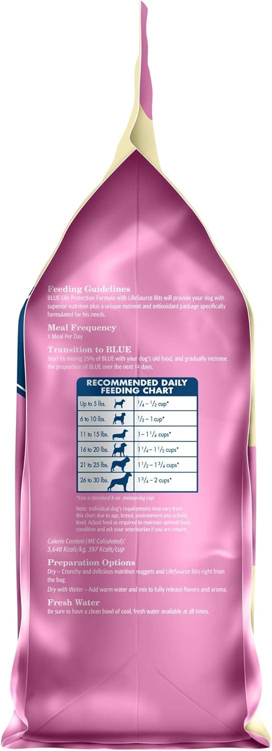 Formulated for the health and well-being of adult dogs, BLUE Life Protection Formula Salmon and Brown Rice dry dog food is made with the finest natural ingredients enhanced with vitamins, minerals, and other nutrients. It’s a high-quality, balanced recipe you can both feel great about. Designed to help your dog thrive, this formula starts with real salmon, is chicken-free, and contains no chicken (or poultry) by-product meals, no corn, wheat, or soy, and no artificial flavors or preservatives. Like all BLUE dry foods, BLUE Life Protection Formula includes exclusive, antioxidant-rich LifeSource Bits to support a healthy immune system in your adult dog.  Give your dog the balanced nutrition of BLUE Life Protection Formula today. BLUE Life Protection Formula is brought to you by Blue Buffalo, the leader in natural pet food. Blue Buffalo makes premium-quality pet foods featuring real meat, fruit, and vegetables. Love them like family. Feed them like family.