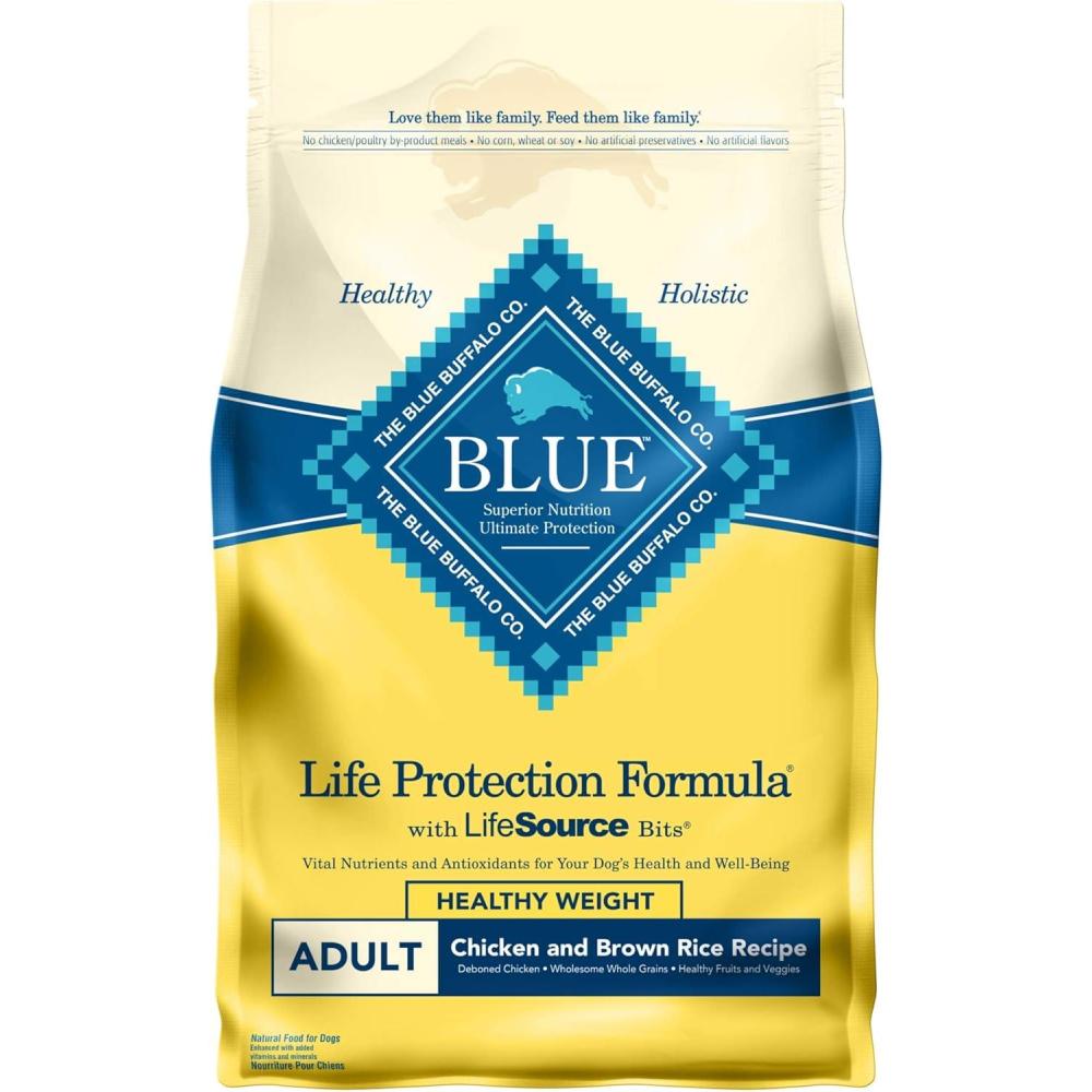 Blue Buffalo Life Protection Formula Adult Dry Dog Food, Helps Build and Maintain Strong Muscles, Made with Natural Ingredients, Salmon & Brown Rice Recipe, 5-lb. Bag(Healthy Weight Chicken & Brown Rice)