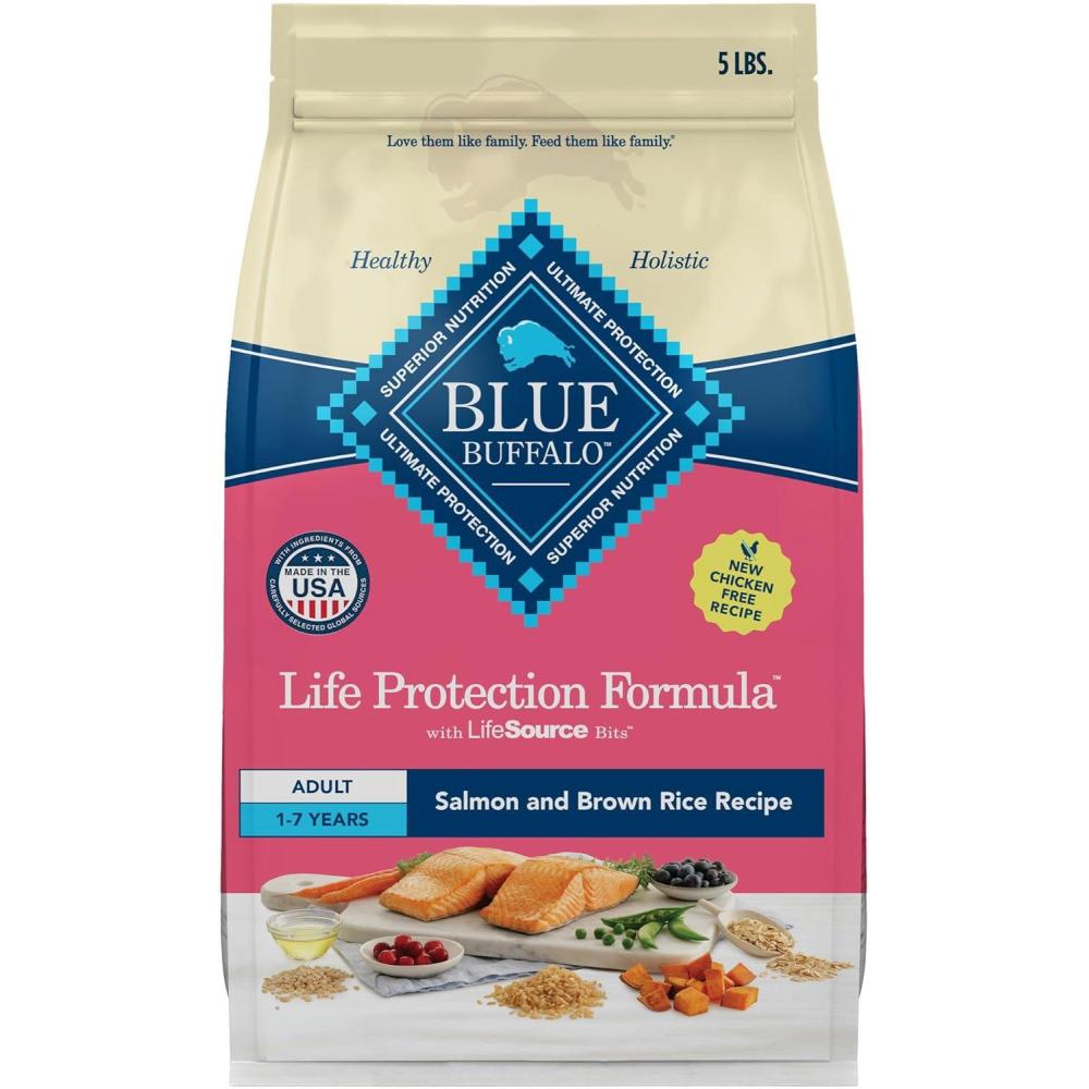 Blue Buffalo Life Protection Formula Adult Dry Dog Food, Helps Build and Maintain Strong Muscles, Made with Natural Ingredients, Salmon & Brown Rice Recipe, 5-lb. Bag(Salmon Chicken-Free)