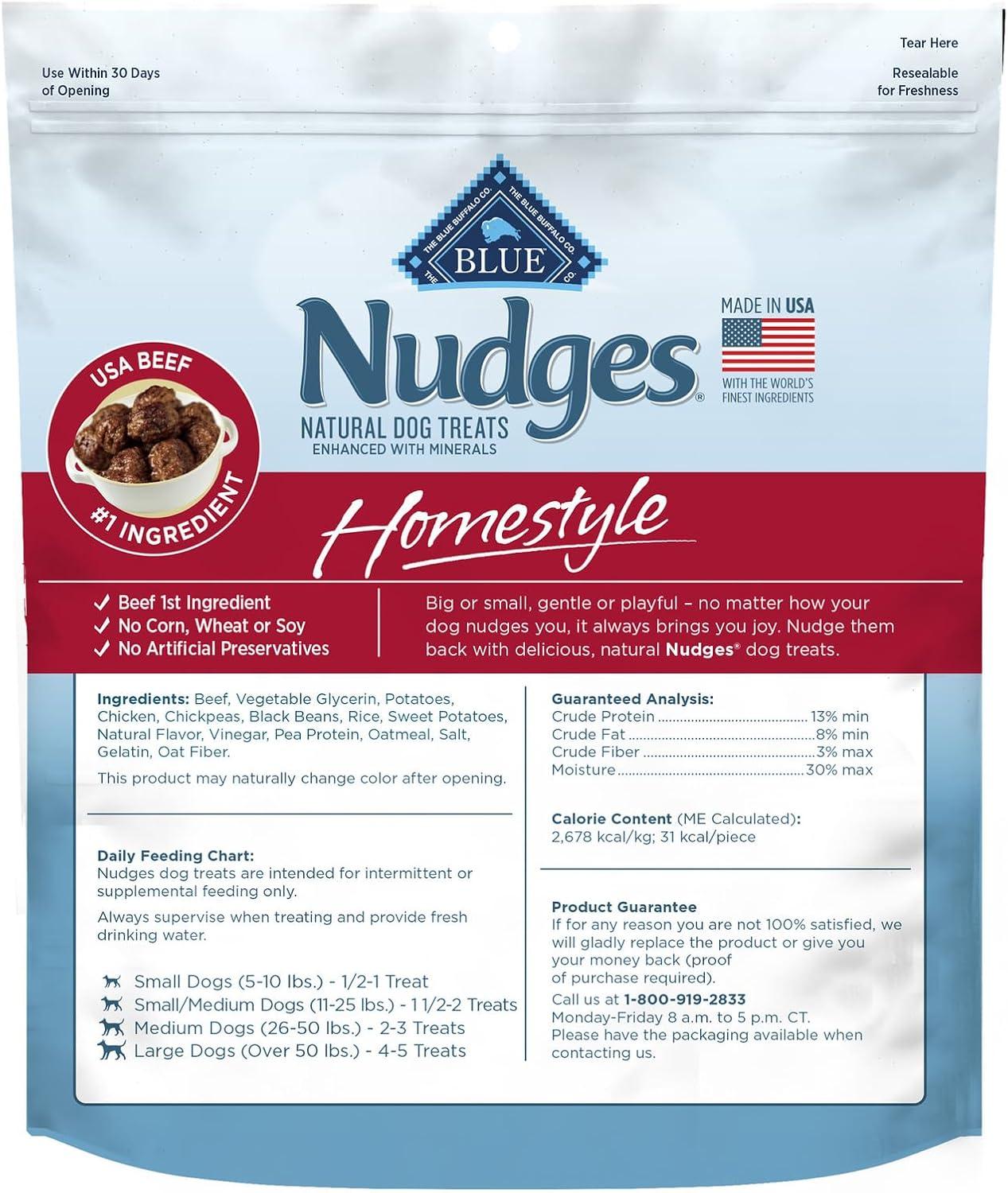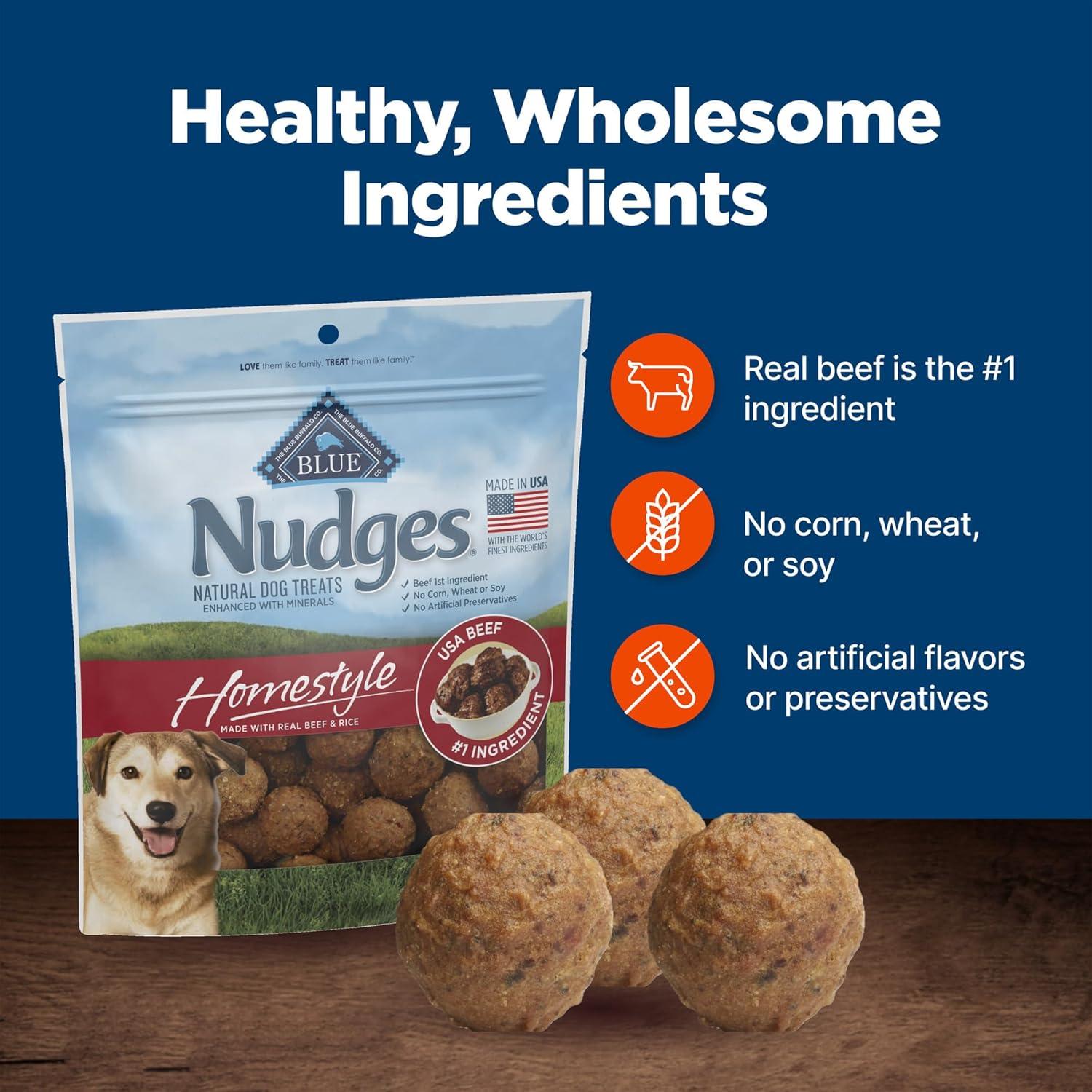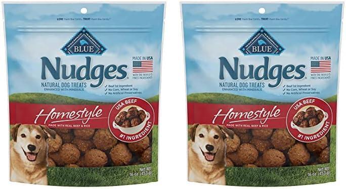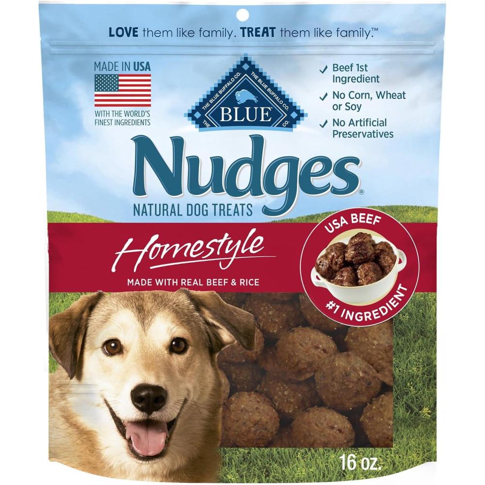 Blue Buffalo Nudges Homestyle Natural Dog Treats Made with Real Chicken, Made in the USA, Chicken, 10-oz Bag(Beef and Rice)