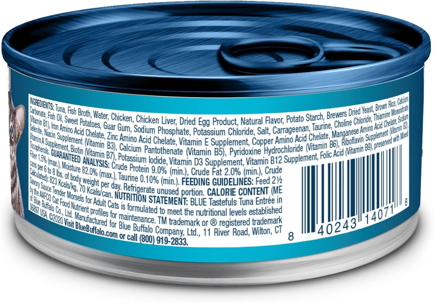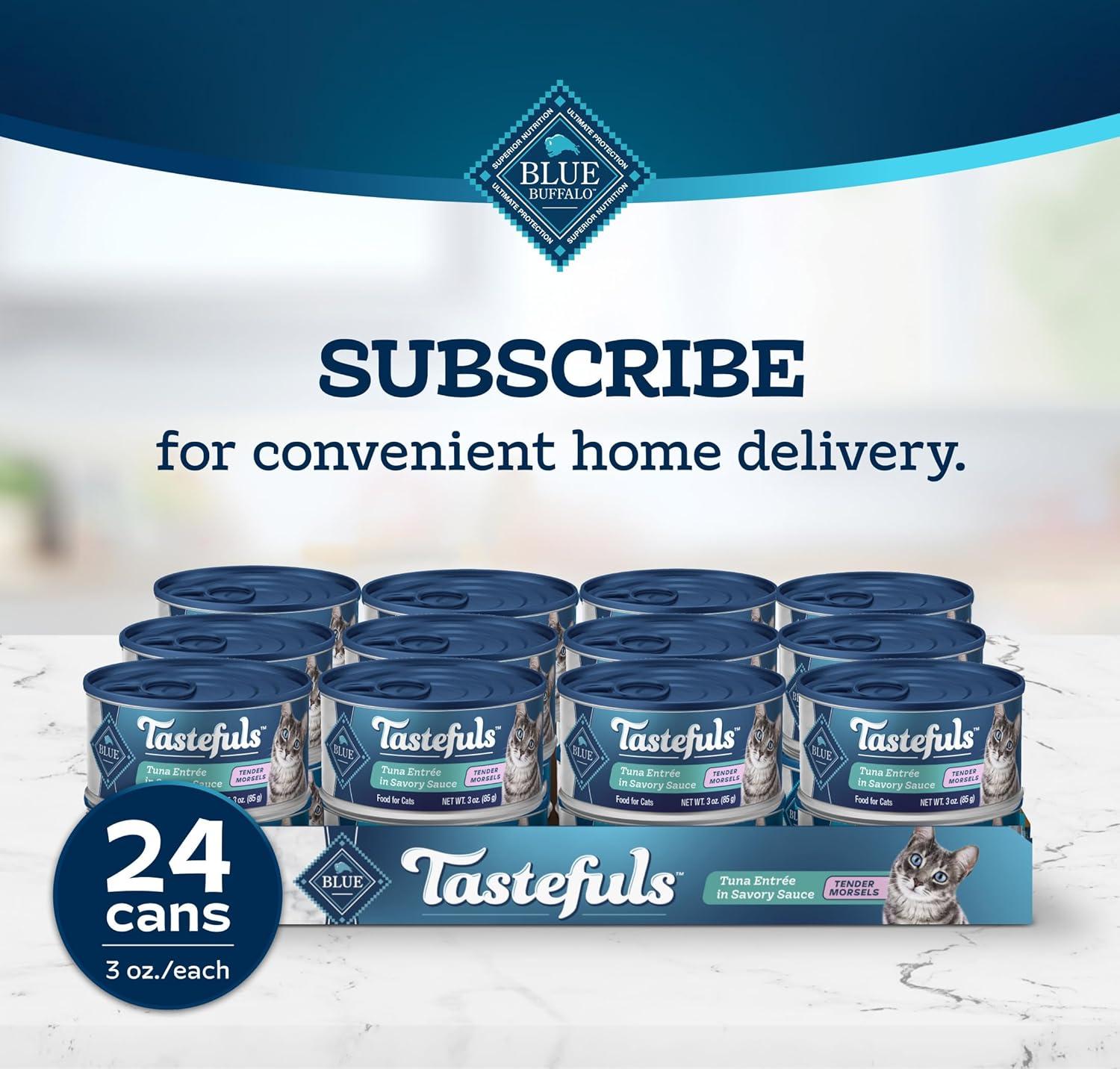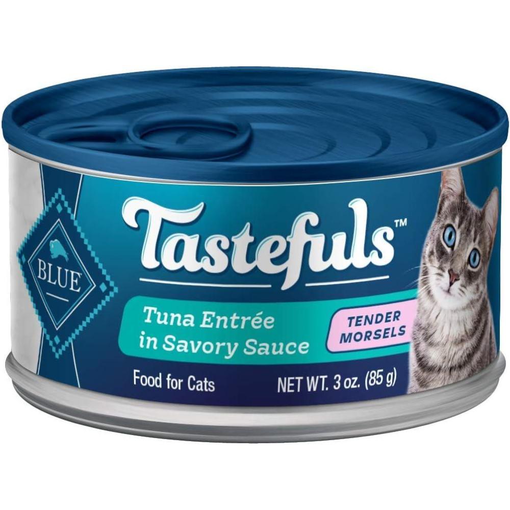 BUNDLE: Contains forty eight (48) 3-oz cans of BLUE Tastefuls Natural Tender Morsels Wet Cat Food, Chicken Entrée or Tuna Entrée