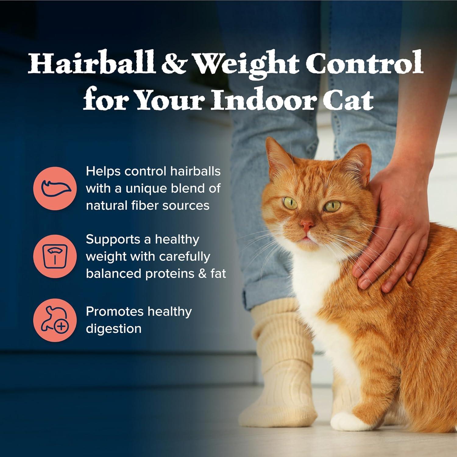 HAIRBALL & WEIGHT CONTROL FORMULA: This indoor cat food is formulated to help reduce hairballs and maintain an ideal, healthy body weight