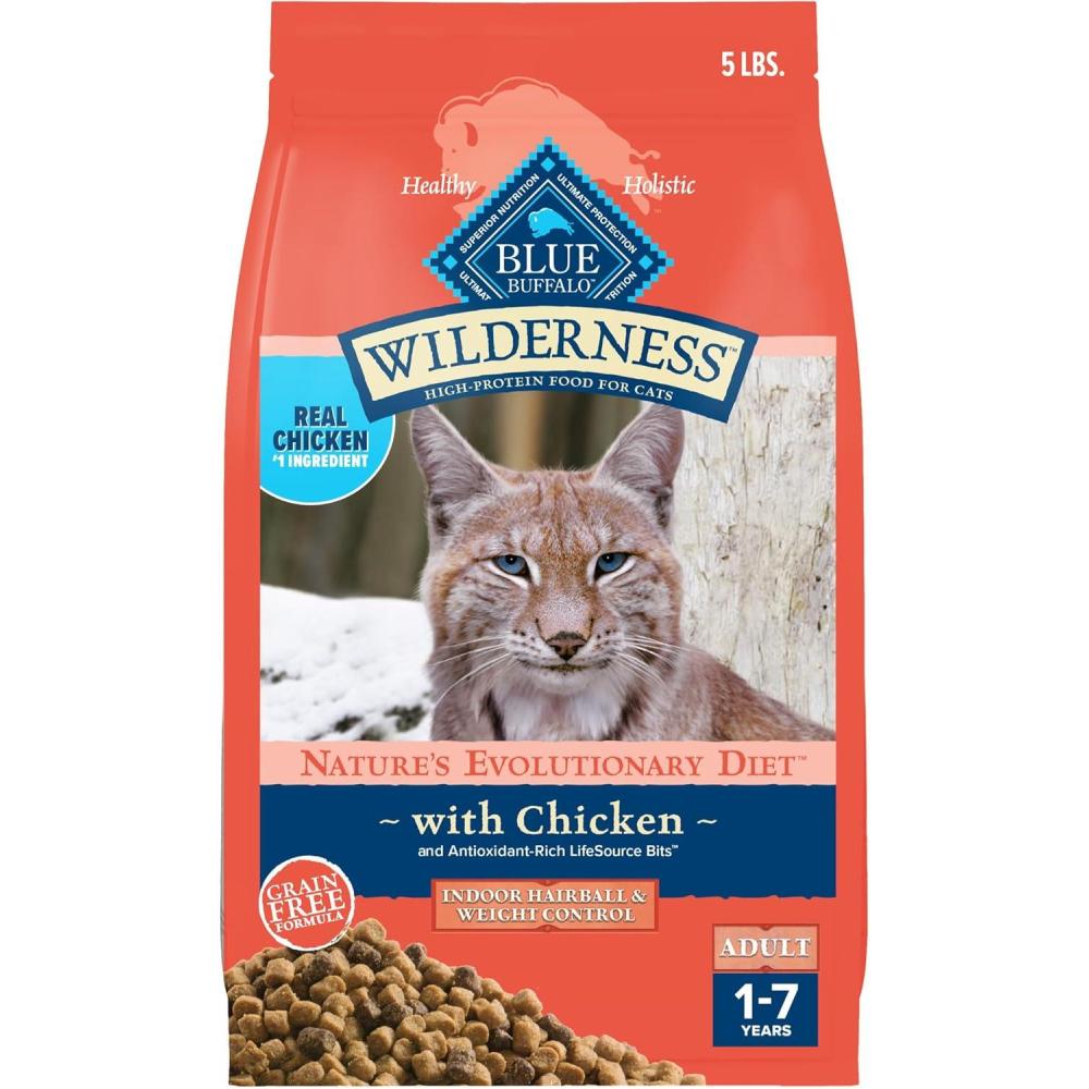 Blue Buffalo Wilderness Adult Indoor Dry Cat Food, Indoor Hairball Control and Weight Control Formula, High-Protein and Grain-Free Diet, Made with Natural Ingredients, Chicken, 11-lb. Bag(5 Pound (Pack of 1))