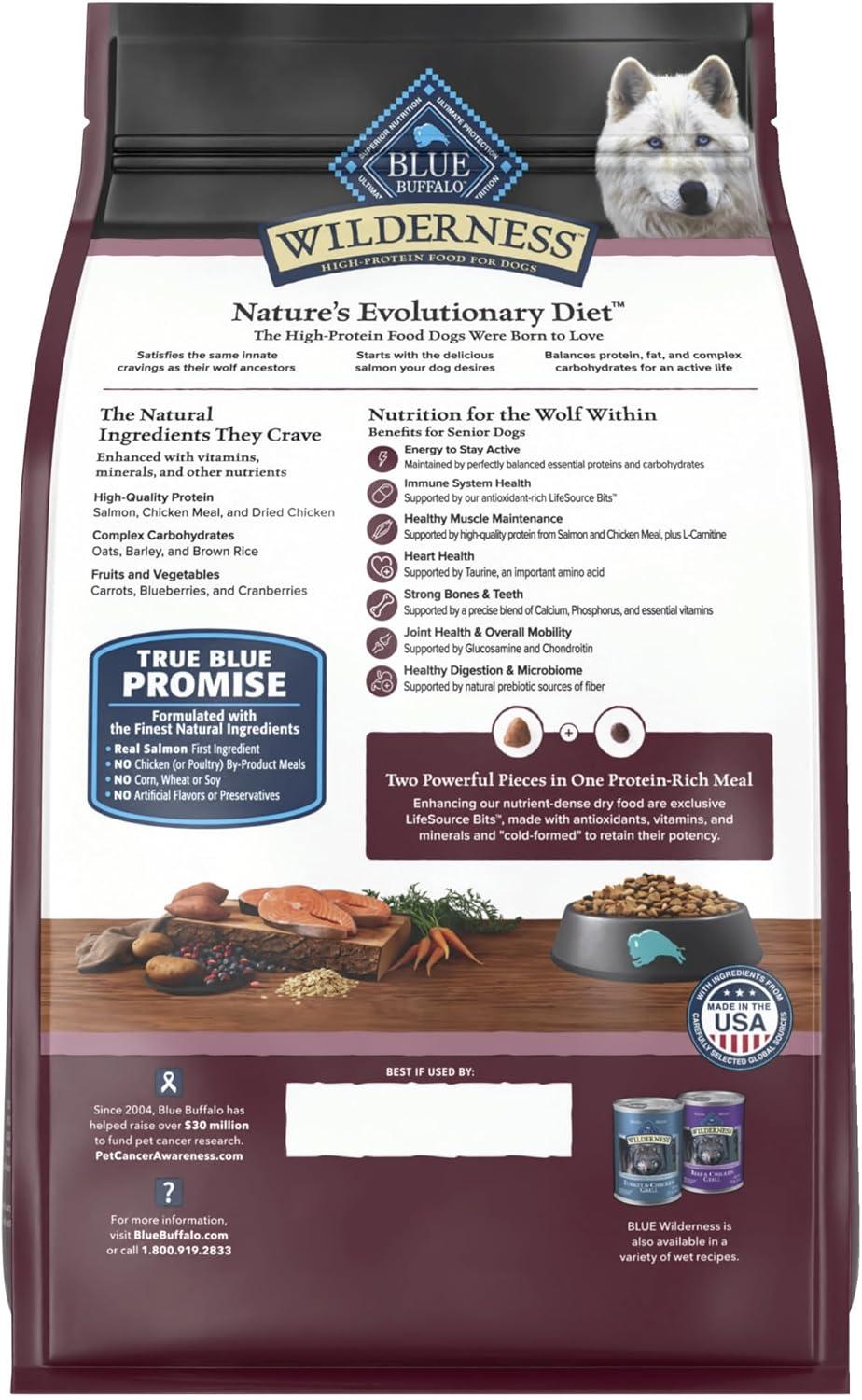 Contains One (1) 13-lb bag of BLUE Wilderness High-Protein Senior Natural Dry Dog Food, Salmon Recipe