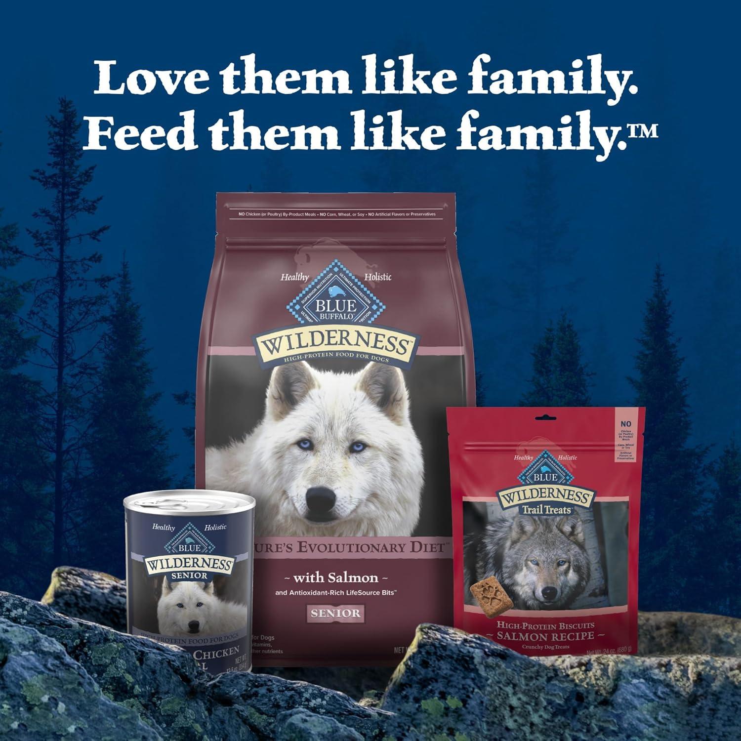BLUE Wilderness Senior Dog Food is formulated with 75% protein from animal sources and real salmon as the first ingredient to satisfy your dog's wild side. Blue Buffalo senior dog food also contains real fruits, vegetables, and other key nutrients to promote healthy muscle maintenance and provide energy to stay active. Like all Blue Buffalo natural dry dog foods recipes, this BLUE Wilderness chicken recipe is formulated without any chicken (or poultry) by-product meals. This natural dry dog food is also free of corn, wheat, soy, artificial flavors, and preservatives. You can feel great knowing Blue Buffalo is helping your senior dog thrive with a protein-packed diet.
